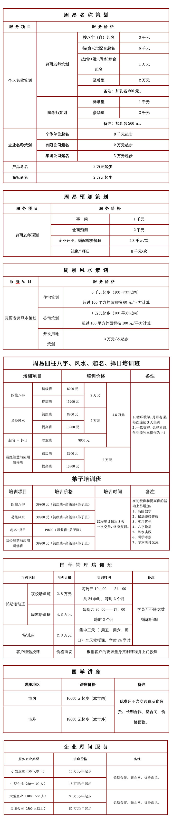 以上南京灵雨起名字价格、取名字价格、宝宝取名价格、公司起名价格、环境风水布局价格以及周易讲座和易学培训价格均由南京祥名楼专业起名公司、南京灵雨取名网、南京周易取名大师、江苏易经起名老师灵雨老师提供!