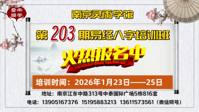 南京灵雨国学培训中心【第203期易经八字培训班】兹定于2026年1月23日正式开班授课!